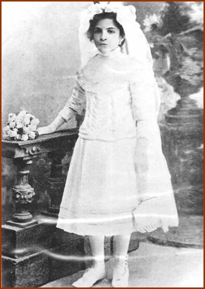 Jesús. Esta le asegura que de grande será monja como ella. Con vestidos blancos y áureos velos entran las comulgantes hasta el altar. Entre ellas se ve también Dora, que salta de la alegría. Recibe la comunión de manos del Señor Obispo. Es tanto el fervor que se transparenta en sus actitudes al recibir por primera vez al Señor, que Monseñor luego de la ceremonia, ya en la sacristía, la besa efusivamente y la felicita. |