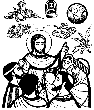 los discípulos que así abordan a Jesús. A la vista de aquel magnífico templo,