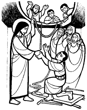 dice; “Yo te lo mando, levántate, toma tu camilla y vete a tu casa” Jesús se encuentra con un hombre que le pide ser curado de