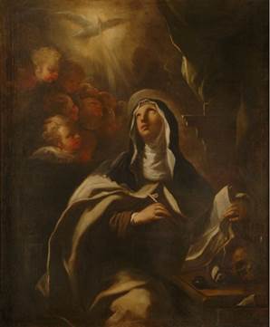 Espíritu Santo que la ilumina, el rostro en arrobamiento de la santa y las