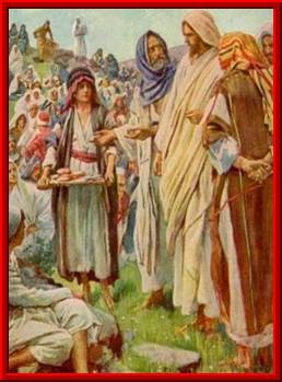 tomó los panes, dio gracias y los distribuyó a los que estaban sentados” Jn 6, 1-15 "Aquí hay un niño que tiene cinco panes de cebada y dos pescados,